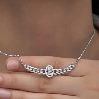 Gümüş Gurmet Zincirli Oval Baget Taşlı Kadın Kolye Modası hiçbir zaman geçmeyecek olan oval baget taşlı kadın kolye, günümüz takıları ile farklı stillerde yeniden yorumlanıyor. Zirkonun göz alıcı ışıltısı, sizi de saracak. Sizin olduğu kadar sevdiklerinizin de keyifle takacağı bu gümüş beyaz oval baget taşlı kadın kolye, aynı zamanda sevginizi paylaşabileceğiniz en güzel hediyelerden biri…