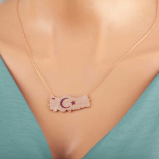 Gümüş Rose Ay Yıldız Türkiye Haritası Kadın Kolye Türk bayrağının ilhamını da kan gölüne yansıyan ay ve yıldızdan aldığını biliyoruz. Bayrağın taşıdığı kutsal anlamı boynunuzda taşımak ve sevdiklerinizle paylaşmak için kaçırılmayacak bir fırsat sunuyoruz. Bu şık kolyeyi anneler günü, sevgililer günü, doğum günü yada özel günlerde sevdiklerinize hediye edebilirsiniz. Bu şık kolye 925 ayar gümüşten…