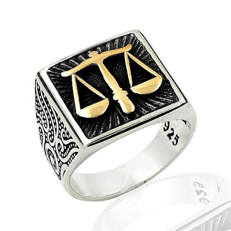 Gümüş Adalet Terazisi Erkek Yüzük