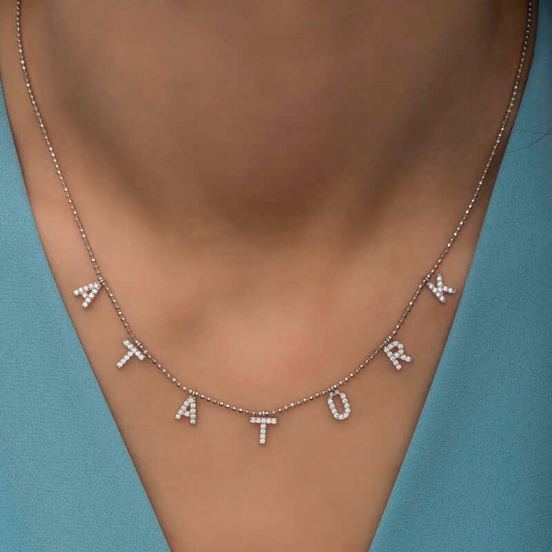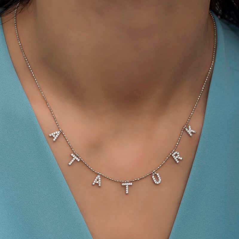Türkiye Cumhuriyeti’nin kurucusu ve ilk cumhurbaşkanı Mustafa Kemal Atatürk’ün ismi her an yanınızda taşımak ve sevdiklerinizle paylaşmak için kaçırılmayacak bir kolye ile karşı karşıyasınız. Anlam itibariyle sevdiklerinize hediye edebileceğiniz şık hediyelerden biri olacaktır. Bu anlamlı kolye 925 ayar gümüşten imal edilmiştir. Gümüş Atatürk yazılı bayan kolye rodyum kaplama yapılmıştır. Rodyum kaplama yapılan gümüş bayan kolye modelleri parlaklığını uzun süre muhafaza eder. Tüm gümüş bayan kolye modellerinde olduğu gibi gümüş Atatürk yazılı bayan kolye modeli de el emeği ile üretilmiştir. Gümüş ve değerli taşlar nedeniyle belirtilen ürün ağırlığında ± %10 sapma olabilmektedir.