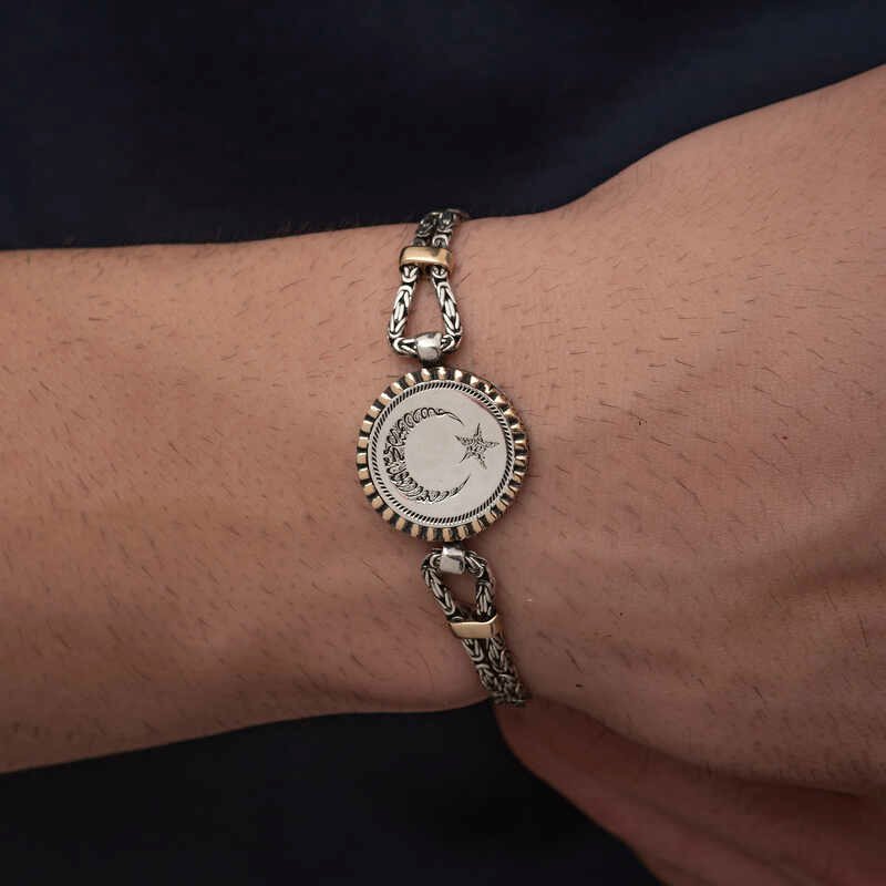 Gümüş Ay Yıldız Erkek Bileklik