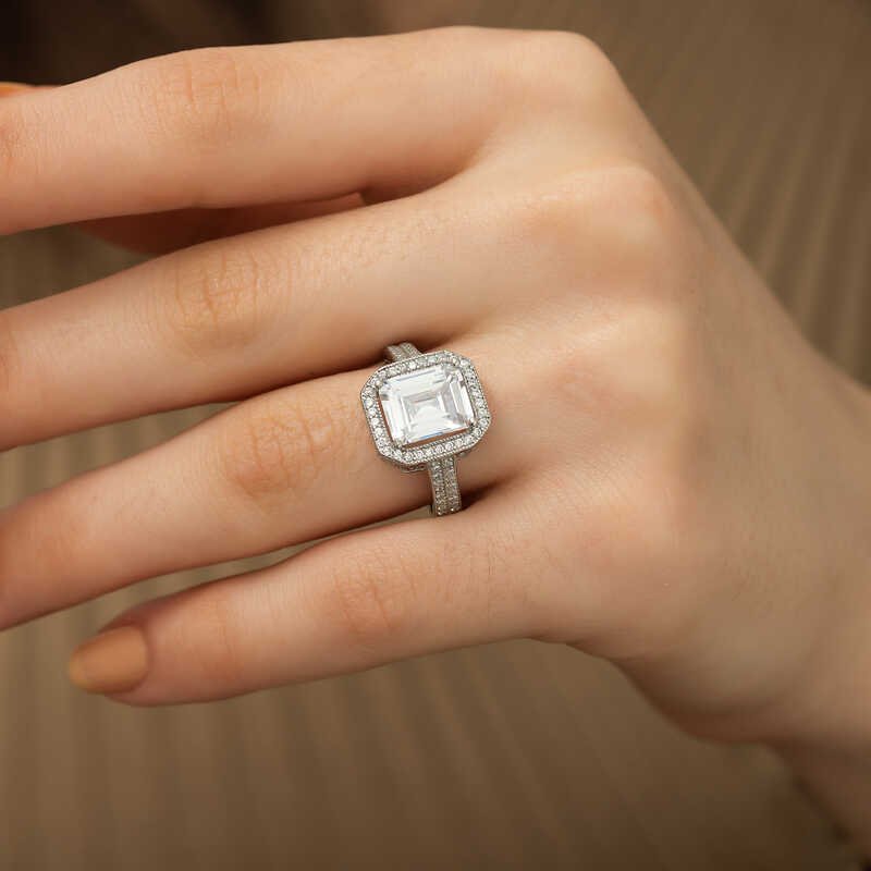 Günlük hayatta rahatlıkla kullanabileceğiniz bu özel tasarım baget kare yüzük 925 ayar gümüşten imal edilmiştir. Gümüş üzerine rodyum kaplama yapılmıştır. Rodyum kaplama yapılan bayan gümüş yüzük modelleri parlaklığını uzun süre muhafaza eder, oksitlenmesi gecikir. Yüzük üzerinde bulunan taşlar zirkondur. Sevdiğinize doğum günü, sevgililer günü ve özel günlerde tercih edebileceğiniz mükemmel bir hediye seçeneğidir. Gümüş bayan yüzük modellerimizin tamamında olduğu gibi bu baget kesim bayan yüzük de tamamen el emeği ile üretilmiştir. Gümüş ve değerli taşlar nedeniyle belirtilen ortalama ürün ağırlığında ± %10 sapma olabilmektedir.