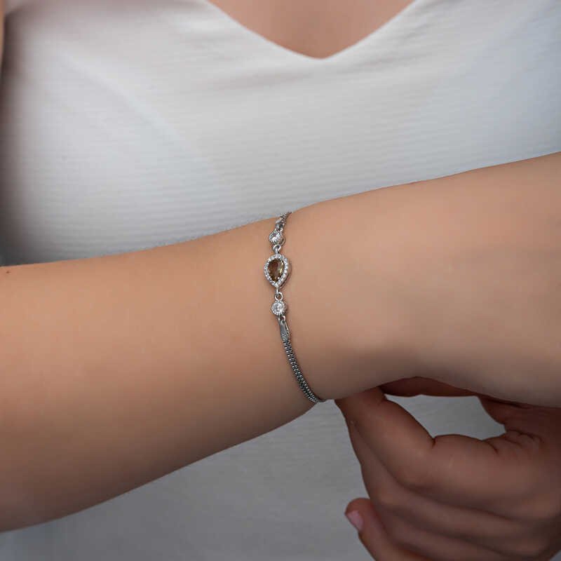 Gümüş Damla Zultanit Taşlı Kadın Bileklik