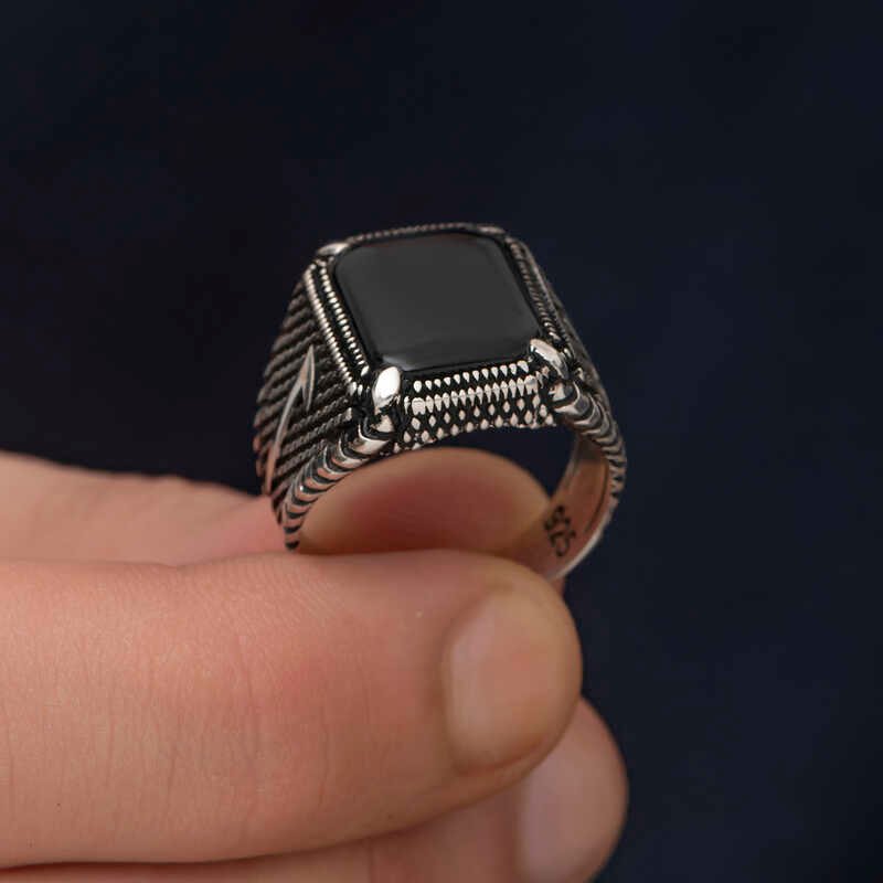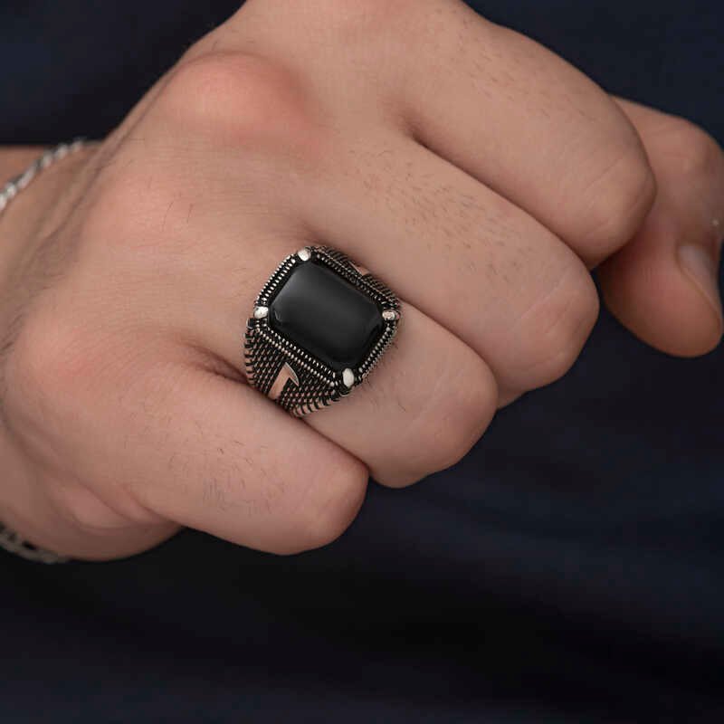 Gümüş Elif Oniks Erkek Yüzük