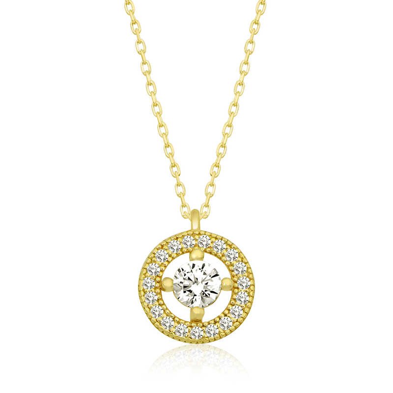 Gümüş Gold Minimal Yuvarlak Tektaş Kadın Kolye