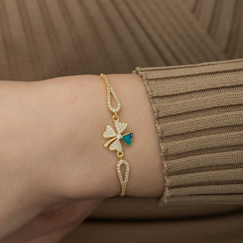Gümüş Gold Nazarlı Yonca Bileklik