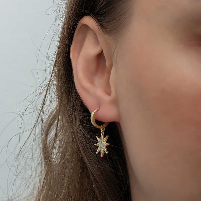 Gümüş Gold Sallantılı Kutup Yıldızı Kadın Küpe