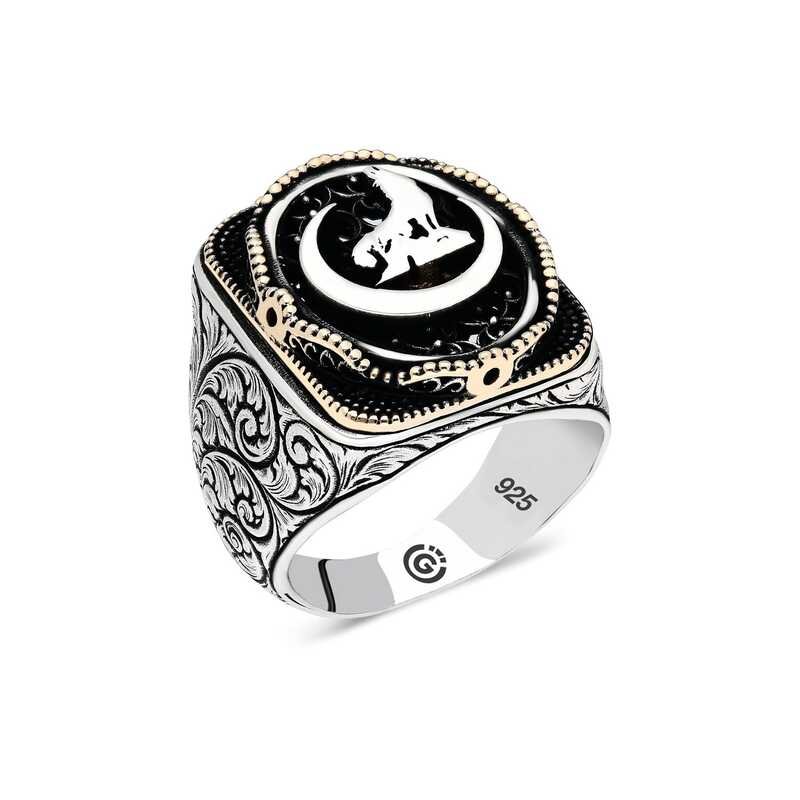 Gümüş üzerindeki hilal bozkurt oval erkek yüzük modeli günün her anında kullanabileceğiniz şık bir aksesuardır. Bu yüzüğü; kendinize ya da sevdiklerinize doğum gününde, babalar gününde ya da özel günlerde hediye edebilirsiniz. Hilal bozkurt erkek yüzük modeli 925 ayar gümüşten imal edilmiştir. Gümüş üzerine oksit kaplama yapılmıştır. Oksit kaplama yapılan gümüş erkek yüzük modelleri parlaklığını uzun süre muhafaza eder. Tüm erkek yüzüklerde olduğu gibi gümüş hilal bozkurt erkek yüzük modeli de el emeği ile üretilmiştir. Gümüş ve değerli taşlar nedeniyle belirtilen ortalama ürün ağırlığında ± %10 sapma olabilmektedir.