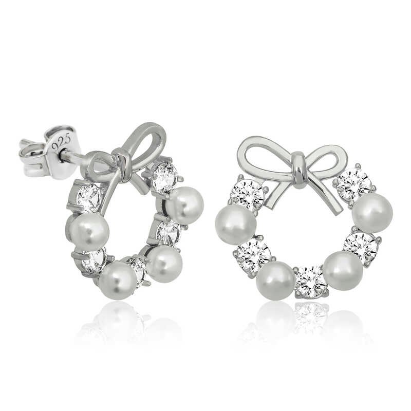 Gümüş İnci Kurdele Çivili Kadın Küpe