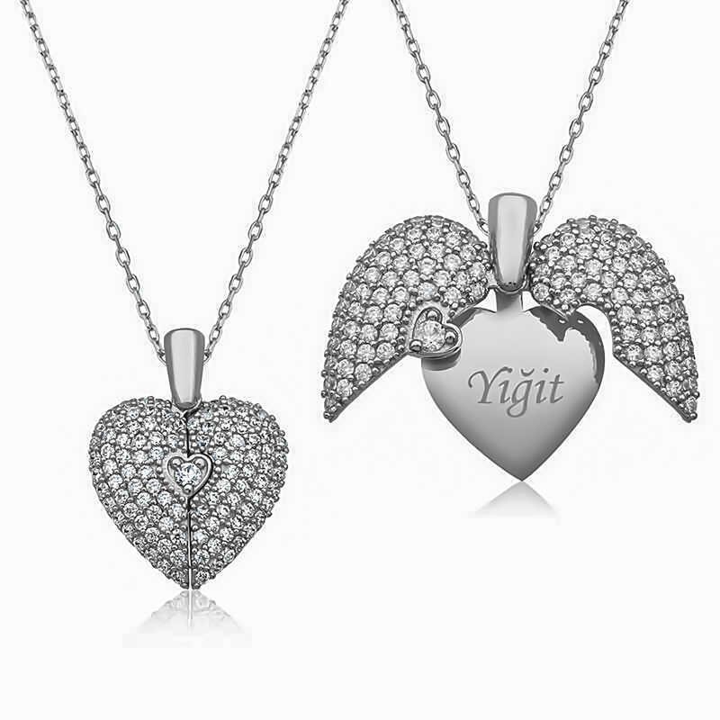 Zirkon taşlarla ışıl ışıl parlayan kalbin içine yazılan isim ile yüreğinize tercüman olun. Kalbimdeki Sır Kolye modeli sizin için en iyi tercihlerden biri olabilir. Sevdiklerinizin ismini, sizin için en kıymetli olan sözleri ya da başka bir ifadeyi saklı tutacak olan beyaz zirkon taşlarla kaplı kanatların yalnızca kapalı olarak kullanılacak şekilde tasarlanmış olmasının nedeni kolyede sır konseptinin işlenmesidir. Sırlarınız kanatların altında saklı. Gümüş kolye modelleri arasında hem gece hem gündüz kullanımına uygunluğuyla da dikkat çeken Kalbimdeki Sır Kolye’yi ister kendiniz isterseniz de sevdikleriniz için tercih edebilirsiniz. 925 ayar gümüşten imal edilmiştir. Gümüş olan zincir uzunluğu 45 cm’dir. Ürünlerimizin tamamı el emeği ile üretilmiştir. Gümüş ve değerli taşlar nedeniyle belirtilen ortalama ürün ağırlığında ± %10 sapma olabilmektedir.