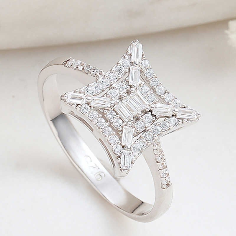 Gümüş Kare Zirkon Taşlı Kadın Yüzük