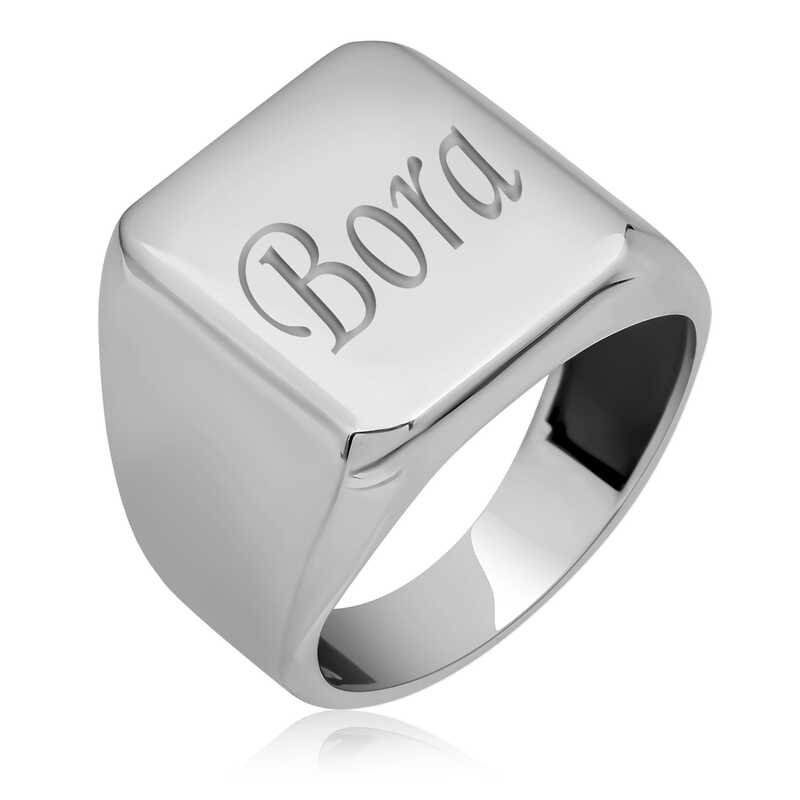 Gümüş Kişiye Özel Kare Erkek Yüzük