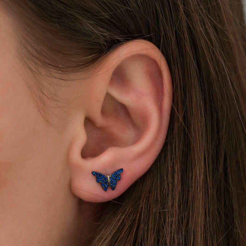 Her yaştan kadının stiline uyum sağlayabilecek farklı küpe modellerinin yer aldığı koleksiyonumuzda birbirinden özgün tasarımlı küpe modelleri sizleri bekliyor. Kelebek figürü kullanılarak hazırlanan küpe aklınızı başınızdan alacak. Günlük kullanıma uygun bir model olan küpe her an sizlerle birlikte. Göz kamaştıran yapısıyla tasarlanmış gümüş kelebek küpeyi severek kullanacaksınız. Bu koleksiyonda hem kendiniz, hem de sevdikleriniz için mutlaka uygun bir küpe bulacaksınız. Gümüş lacivert kelebek küpe, 925 ayar gümüşten imal edilmiştir. Gümüş üzerine rodyum kaplama yapılmıştır. Rodyum kaplama yapılan gümüş bayan küpeler parlaklığını uzun süre muhafaza eder, oksitlenmesi gecikir. Üzerinde bulunan taşlar zirkondur. Tüm gümüş bayan küpelerde olduğu gibi bu gümüş lacivert kelebek küpe modeli de el emeği ile üretilmiştir. Gümüş ve değerli taşlar nedeniyle belirtilen ortalama ürün ağırlığında ± %10 sapma olabilmektedir.
