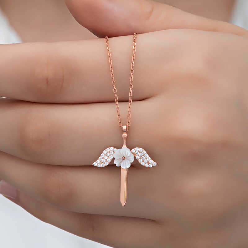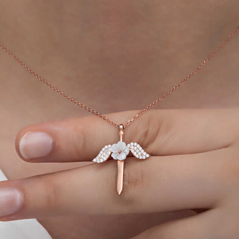Melekler saflığın ve temizliğin simgeleridir. Bu nedenle melek kolye hediye edilen kişiye melek kadar saf ve temiz olduğu mesajı verilmektedir… Aşkınızı meleklerin koruması için tasarlanan bu özel manolya çiçeği melek kadın kolyeyi sevgilinize; doğum günü, sevgililer günü ve özel günlerde hediye ederek onları mutlu edebilirsiniz. Kolye; 925 ayar gümüşten imal edilmiştir. Gümüş melek kadın kolye üzerine rodyum kaplama yapılmıştır. Rodyum kaplama yapılan tüm kolyeler parlaklığını uzun süre muhafaza eder, gümüşe pembe rengi verir. Tüm gümüş kolyelerde olduğu gibi bu gümüş manolya çiçeği melek kadın kolye de el emeği ile üretilmiştir. Gümüş ve değerli taşlar nedeniyle ürün ağırlığında ± %10 sapma olabilmektedir.
