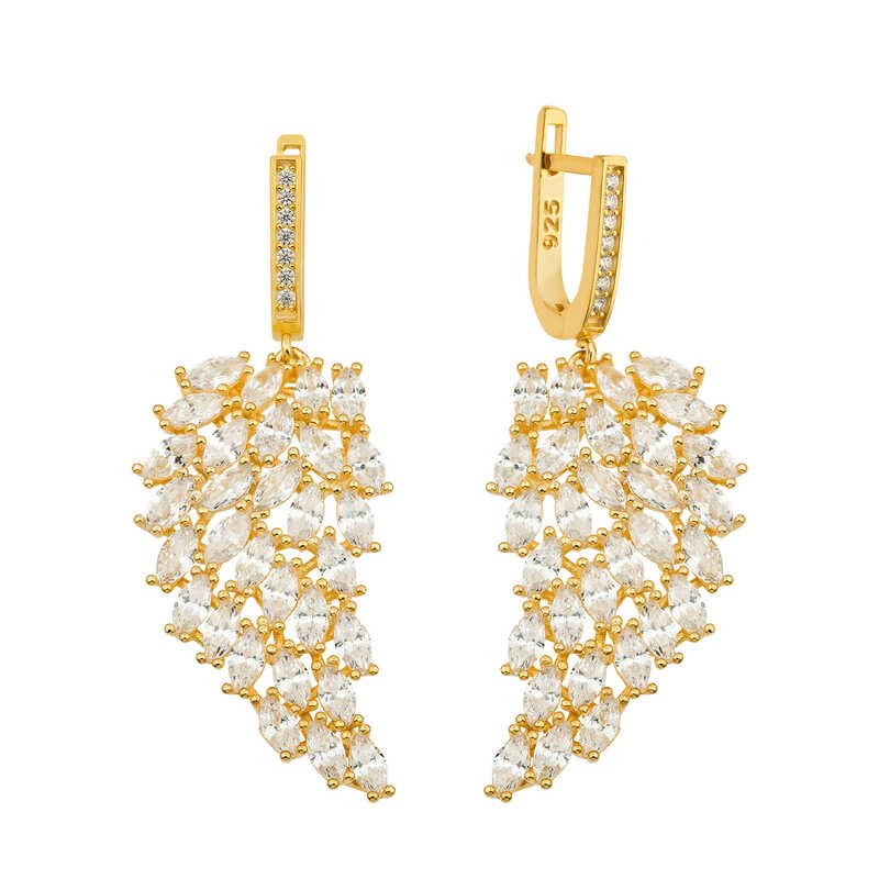 Zirkon taşlarla kaplı ışıl ışıl melek kanadı gümüş küpe ile kanatsız meleğinize tek eksiğini verip, onu sevindirebilirsiniz. “Benim sevgilim bir melek” diyorsanız, melek kanadı yüzük tam da sevgilinize göre… Melek kanadı gümüş küpe, hayatınızın aşkı için uygun bir hediye olduğu kadar, anneniz ya da kız kardeşiniz için de son derece uygundur. Hayatınız da değer verdiğiniz mutlu etmek istediğiniz sevdiklerinizi meleklere layık bir hediye ile sevindirin. 925 ayar gümüşten imal edilmiştir. Gümüş üzerine gold kaplama yapılmıştır. Gold kaplama yapılan küpeler parlaklığını uzun süre muhafaza eder, oksitlenmesi gecikir. Gümüş melek kanadı bayan küpe üzerinde bulunan taşlar zirkondur. Tüm yüzük modellerimiz tamamı el emeği ile üretilmiştir. Gümüş ve değerli taşlar nedeniyle belirtilen ortalama ürün ağırlığında ± %10 sapma olabilmektedir.