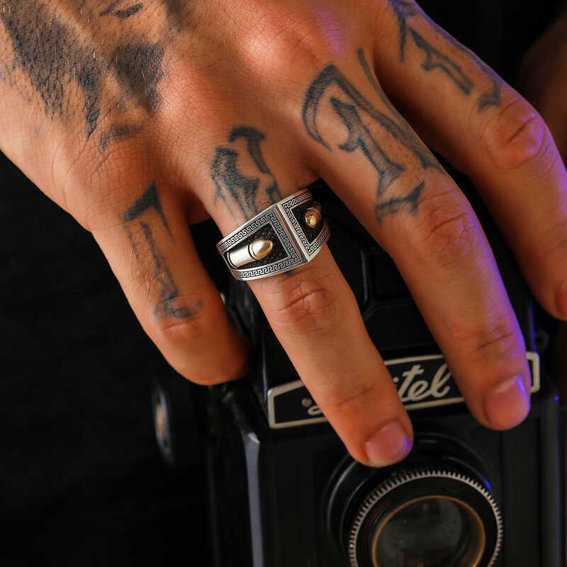 Gümüş Mermi Motifli Erkek Yüzük