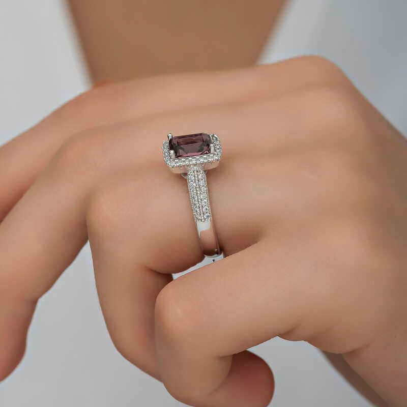 Gümüş Mor Baget Taşlı Kadın Yüzük