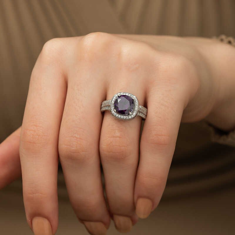 Gümüş Mor Yuvarlak Bayan Yüzük