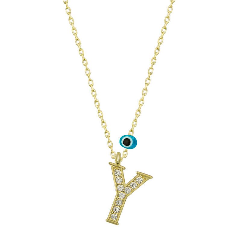 Gümüş Nazar Gold Y Harfi Kadın Kolye