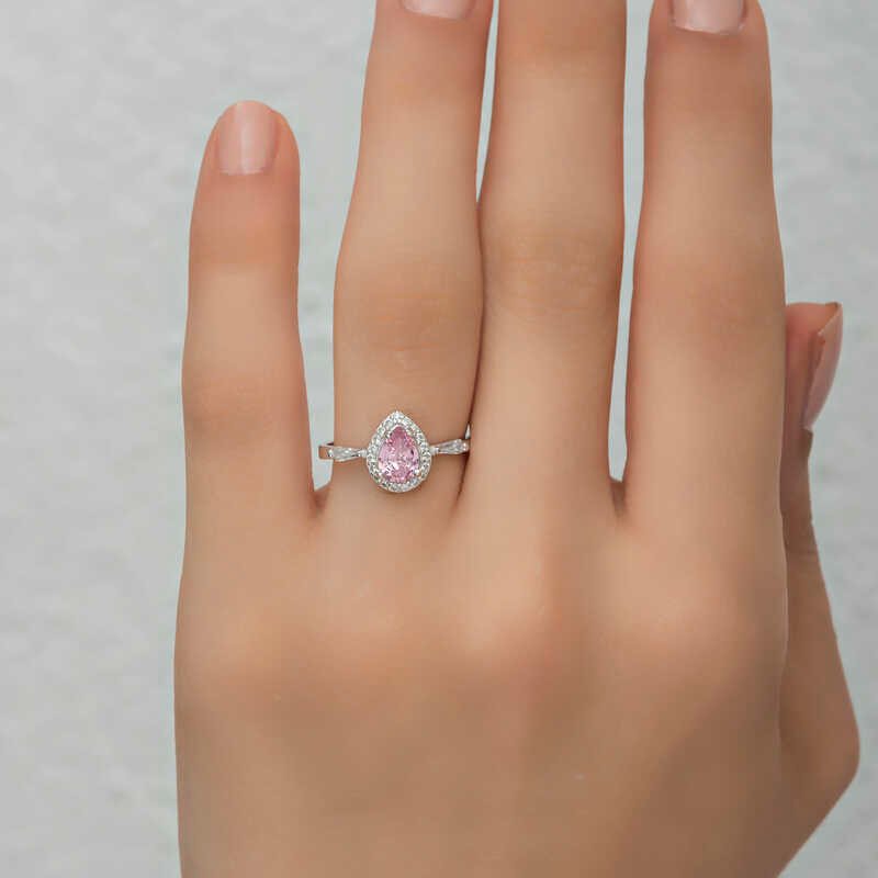 Gümüş Pembe Damla Taşlı Kadın Yüzük