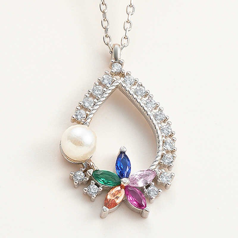 ​Gümüş Renkli Taşlı Çiçekli Kadın Kolye