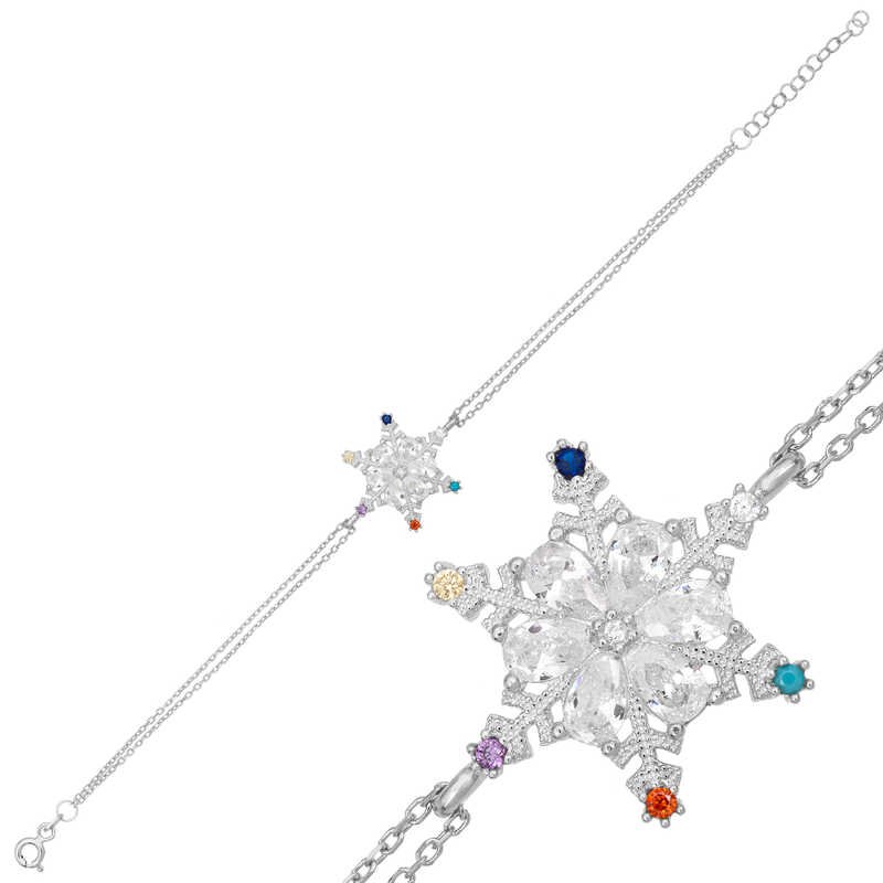 Gümüş Renkli Taşlı Kar Tanesi Kadın Bileklik