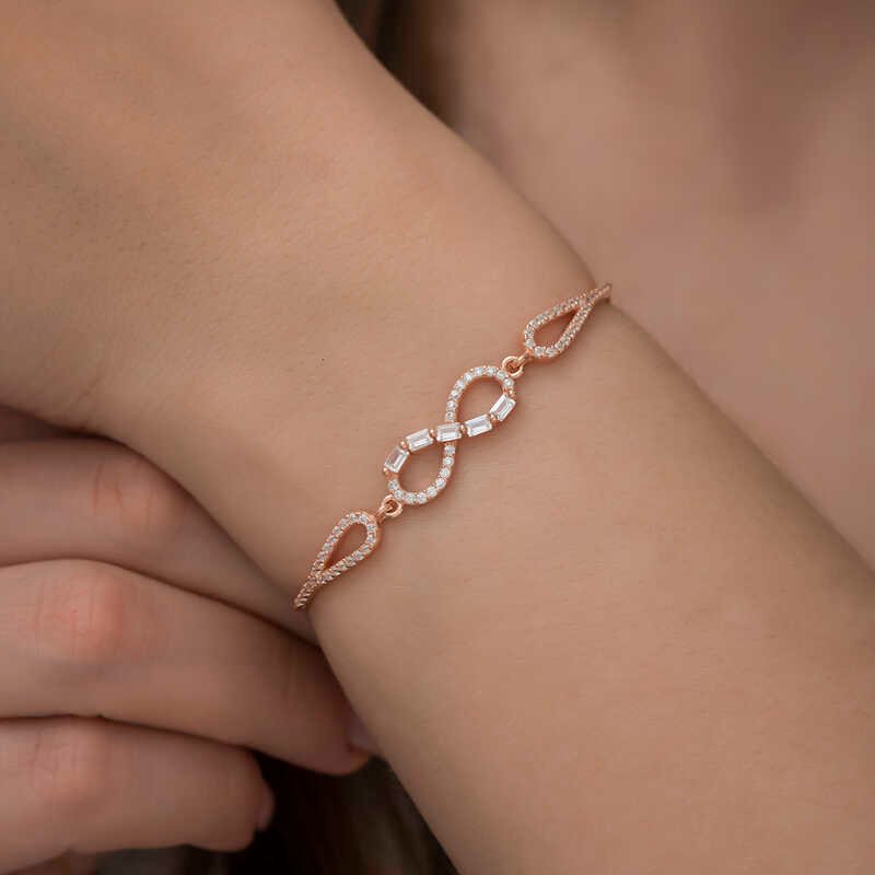 Gümüş Rose Baget Taşlı Sonsuzluk Bileklik
