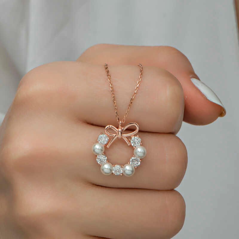 Gümüş Rose İnci Kurdele Kadın Kolye