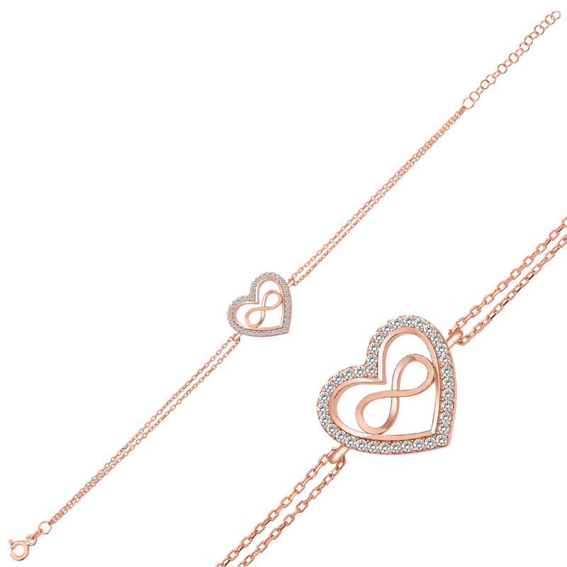 Gümüş Rose Kalp Sonsuzluk Bayan Bileklik