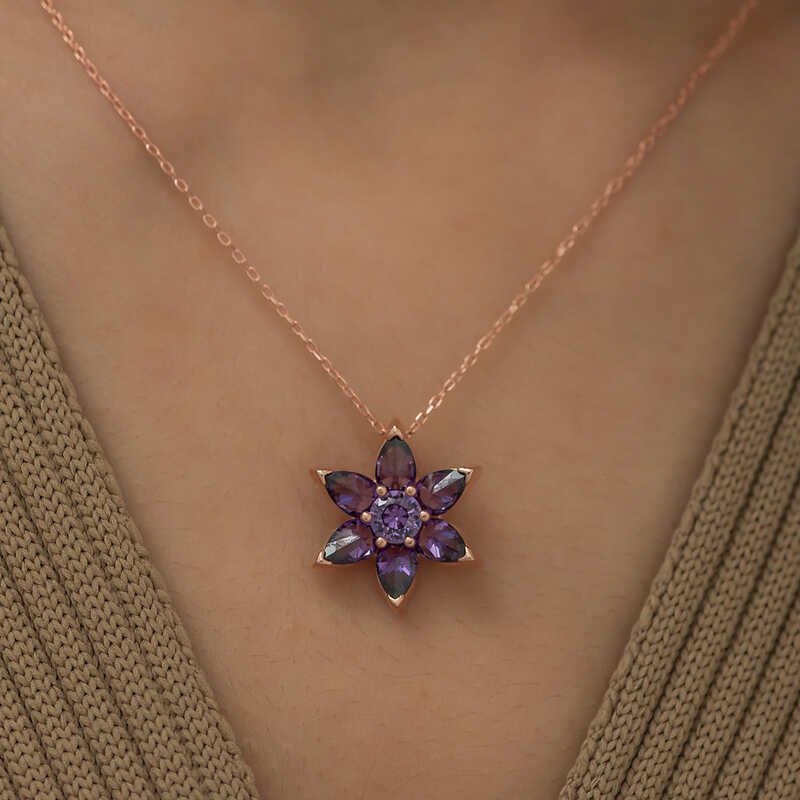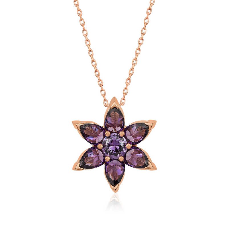 Gümüş Rose Mor Çiçek Kolyeçocuk