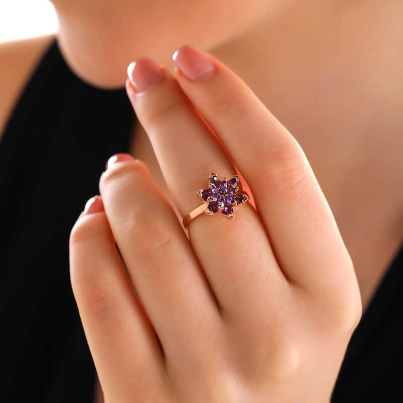 Gümüş Rose Mor Lotus Çiçeği Yüzük