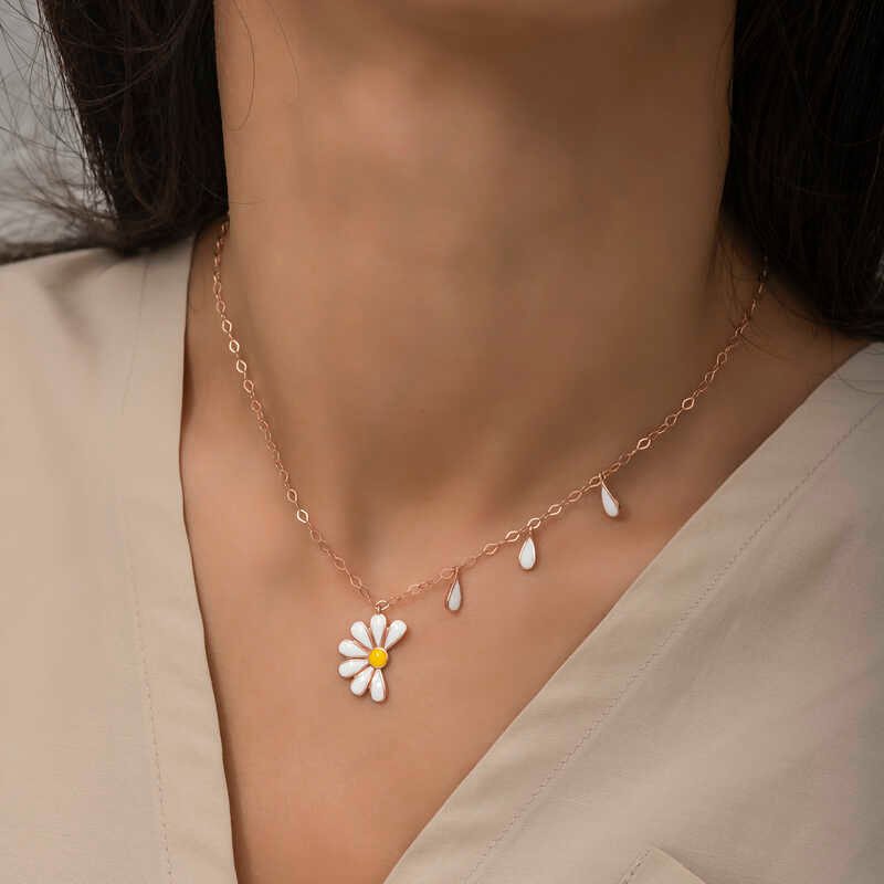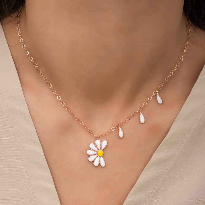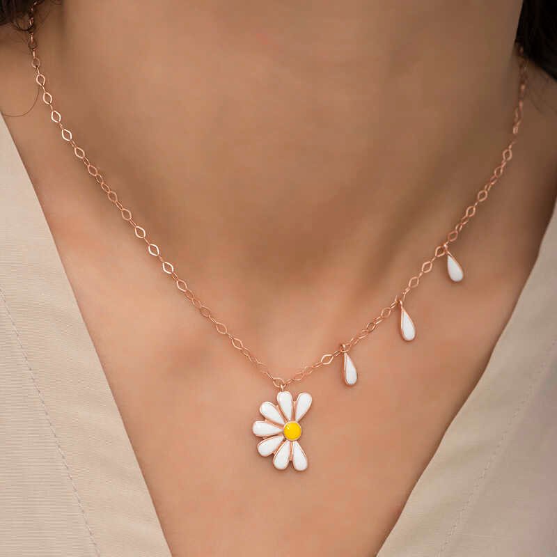 Gümüş Rose Papatya Seviyor Sevmiyor Bayan Kolye