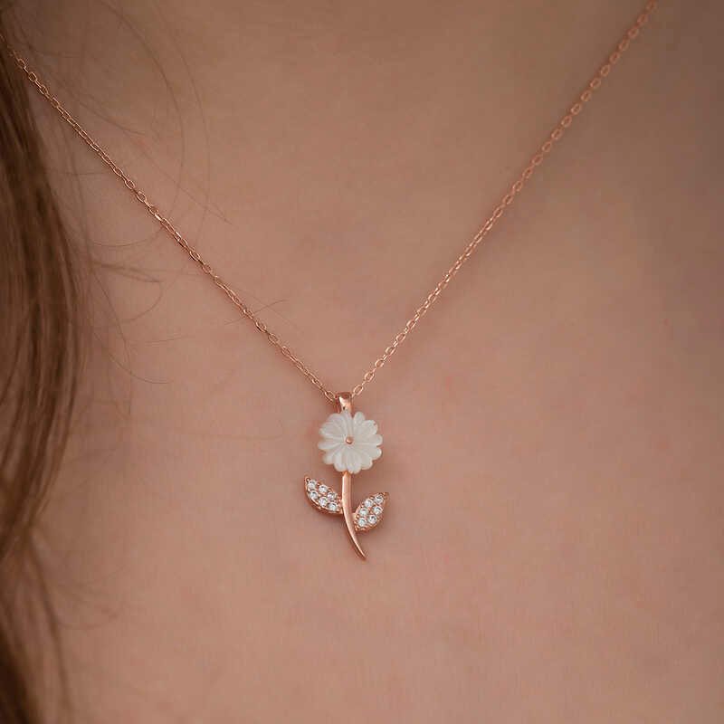 Gümüş Rose Sedef Çiçek Kolye
