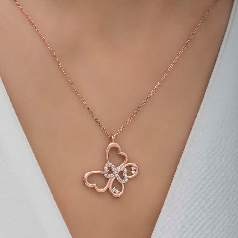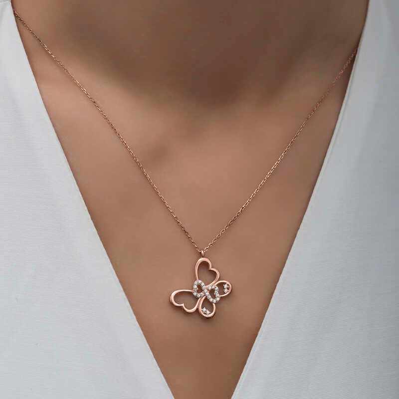 Gümüş Rose Sonsuzluk Kelebek Kadın Kolye
