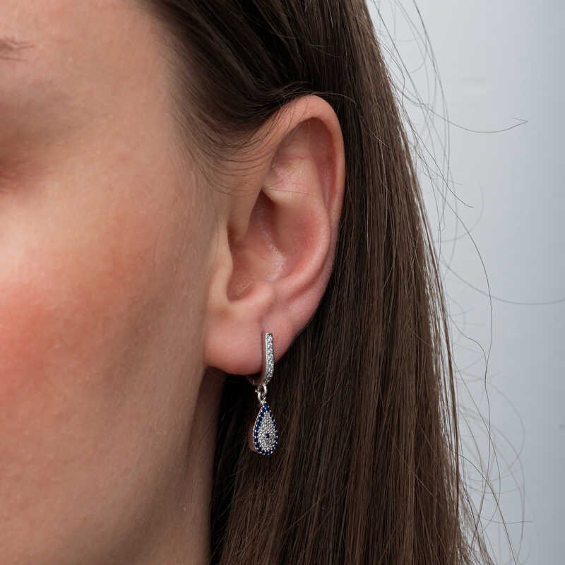 Gümüş Sallantılı Damla Nazar Kadın Küpe