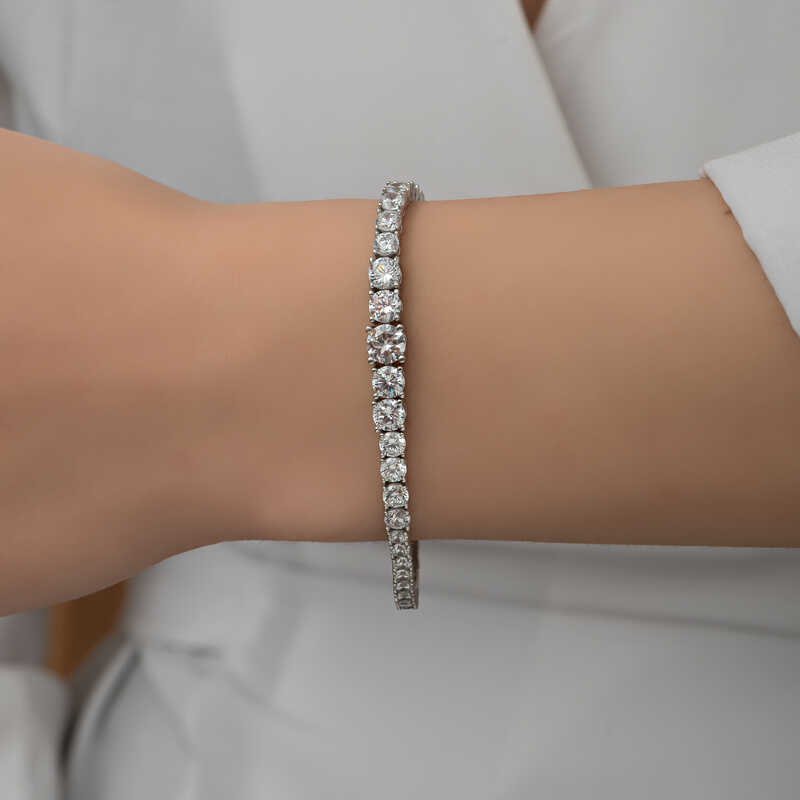 Gümüş Süzme Beyaz Taşlı Su Yolu Kadın Bileklik
