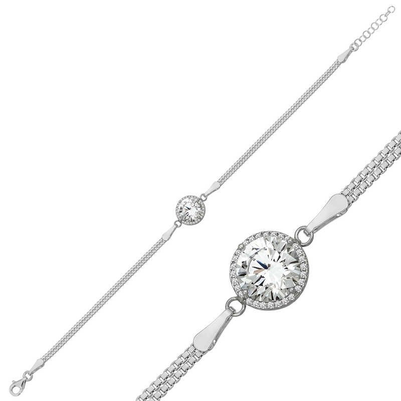 Gümüş Tek Taş Bayan Bileklik