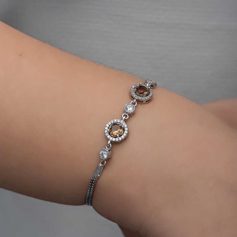 Gümüş ürünlerde her zevke hitap eden bileklik modelleri yer alıyor… Geleneksel tarzda bileklik sevenler için daha sade ve otantik motiflerin yer aldığı modeller de koleksiyonda zevkinize sunuluyor. Gösterişli takılar tercih edenler için opal, firuze, mistik topaz, zultanit gibi renkli taşlardan oluşan modellere yer veriliyor. Gümüş bileklik tasarımları, sade ve düz renk tercih edilen kıyafetlere hoş bir hava katıyor. Stilinizi vurgulayabilmenin ve dışarıya yansıtabilmenin en zarif yollarını sizlere sunan bileklik modellerini inceleyerek sizler de günün her anında kullanabileceğiniz bileklik modellerine sahip olabilirsiniz. Gümüş zultanit taşlı kadın bileklik 925 ayar gümüşten imal edilmiştir. Bu bileklik üzerine rodyum kaplama yapılmıştır. Rodyum kaplama yapılan ürünler parlaklığını uzun süre muhafaza eder. Üzerinde bulunan taşlar zirkon ve zultanittir. Tüm gümüş kadın bileklik modellerinde olduğu gibi gümüş zultanit taşlı kadın bileklik modeli de el emeği ile üretilmiştir. Bilekliğin uzunluğu 22 cm’dir. Gümüş ve değerli taşlar nedeniyle belirtilen ortalama ürün ağırlığında ± %10 sapma olabilmektedir.