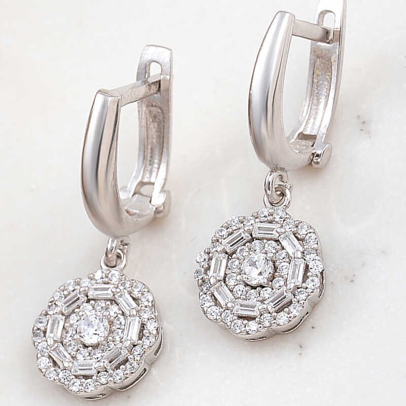 Zirkon ve baget minik taşlardan oluşan bu özel tasarım çiçek kadın küpe 925 ayar gümüşten imal edilmiştir. İlk aşkınız olan annenizi, eşinizi veya sevgilinizi ne kadar sevdiğinizi özel günlerde de hissettirebilir onları mutlu edebilirsiniz. Sevdiklerinizin severek kullanacağı bu küpe ile onların yaşantınıza kattığı değeri gösterin. Gümüş zirkon taşlı çiçek kadın küpe modeli üzerine rodyum kaplama yapılmıştır. Rodyum kaplama yapılan tüm gümüş küpe modelleri parlaklığını uzun süre muhafaza eder ve oksitlenmesi gecikir. Tüm gümüş kadın küpe modellerinde olduğu gibi gümüş zirkon taşlı çiçek kadın küpe de el emeği ile üretilmiştir. Gümüş ve değerli taşlar nedeniyle belirtilen ortalama ürün ağırlığında ± %10 sapma olabilmektedir.